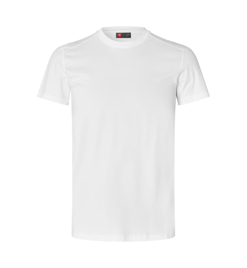 O-hals T-shirt i let og strækbar kvalitet til den aktive hverdag eller sport med flotte detaljer. Det lette materiale er svedtransporterende og hurtigttørrende. Tætsiddende model.