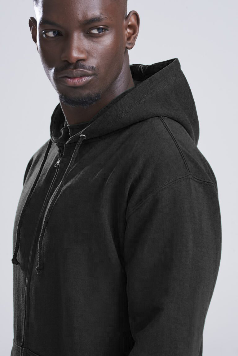 Den originale og klassiske hoodie med lynlås (også kaldet “zoodie”) fra Just Hoods. Den er komfortabel, varm og nem at have på – med børstet fleece på indersiden samt ribkanter ved manchetter og nederkant for en tætsiddende pasform.